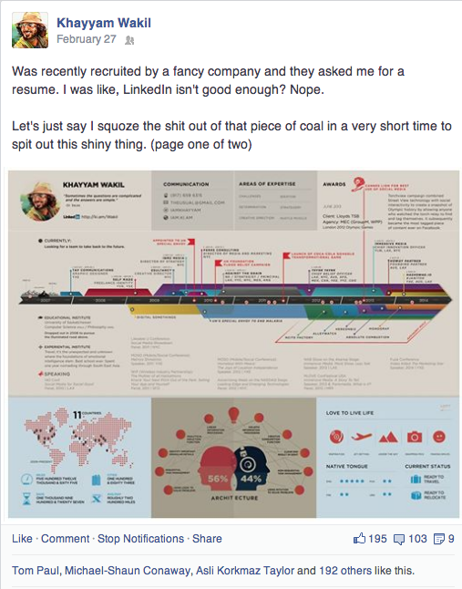 So I posted a page from the final version on my Facebook timeline to get some feedback. Got lots! Some comments were gold. Many people asked for a template. Others asked if I could design their resume. People wanted the ability to have this. So I thought to myself, why not?!