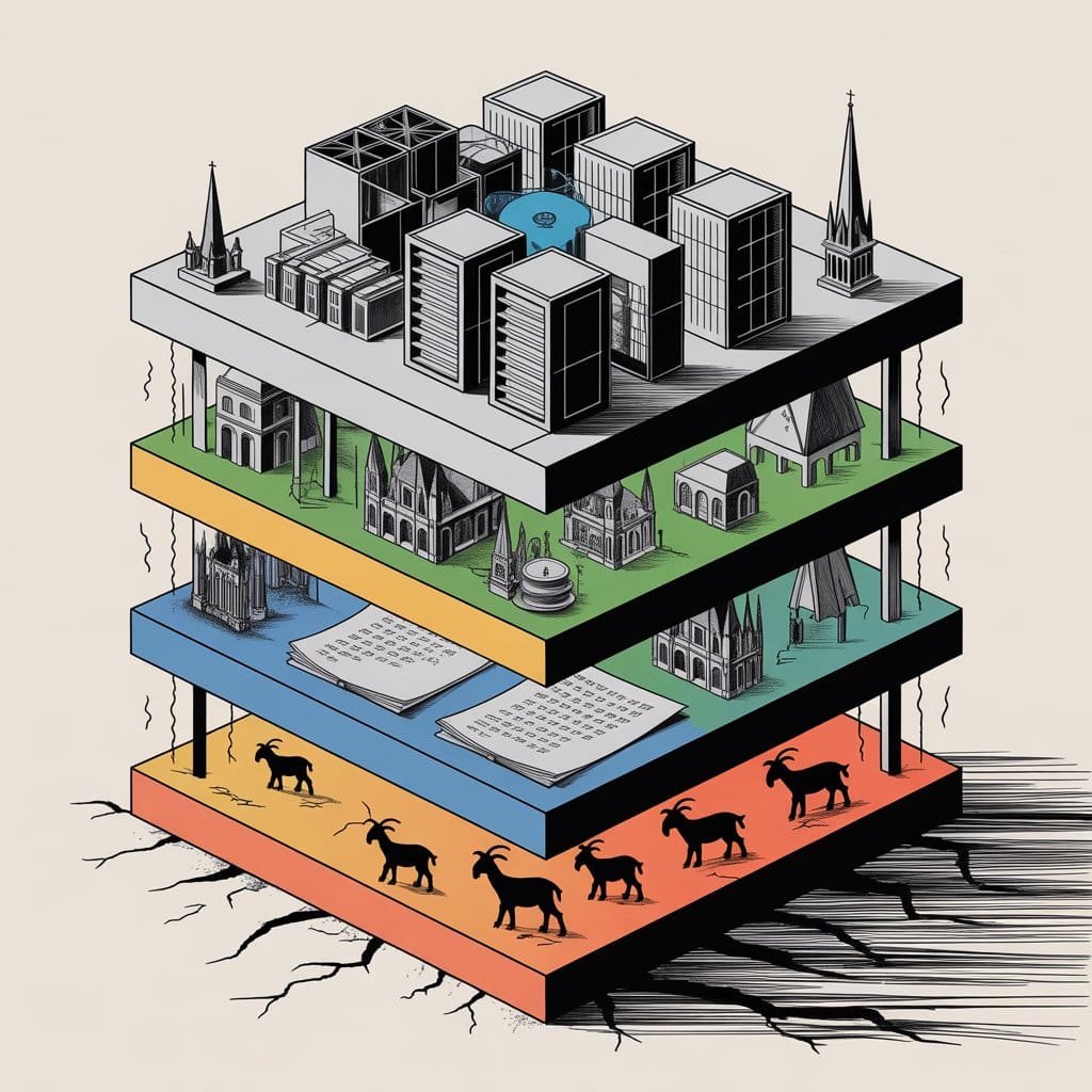 We're not high-tech. We're a remix civilization. Twenty-first century capabilities (AI, fusion, CRISPR) running on 16th-century middleware built over Bronze Age firmware.