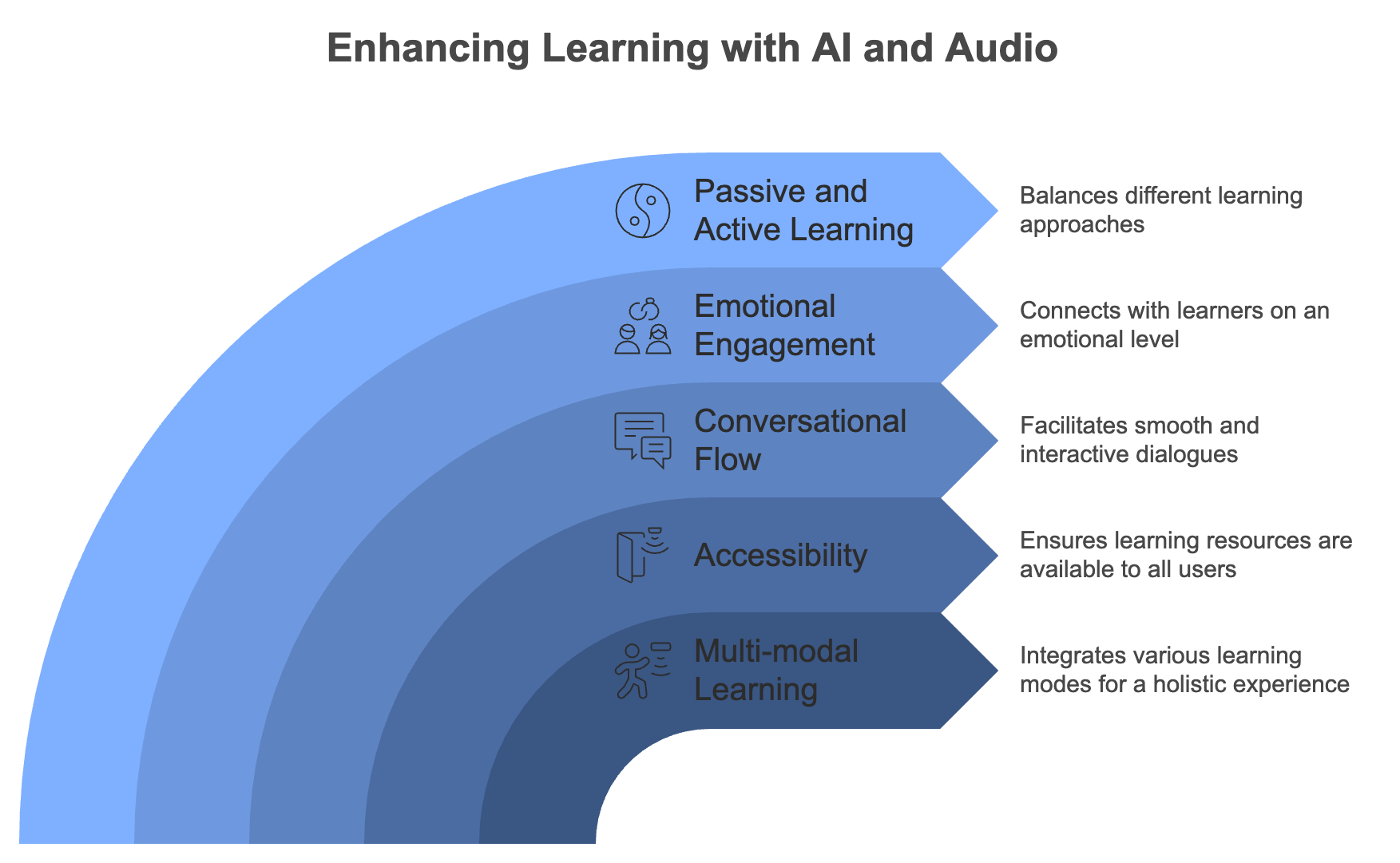 - Accessibility: Audio-based learning tools make education more accessible to those with visual impairments or reading difficulties, as well as allowing for learning during activities where reading isn't possible (e.g., commuting, exercising). This democratizes education, making it available in more contexts and to a wider range of learners.